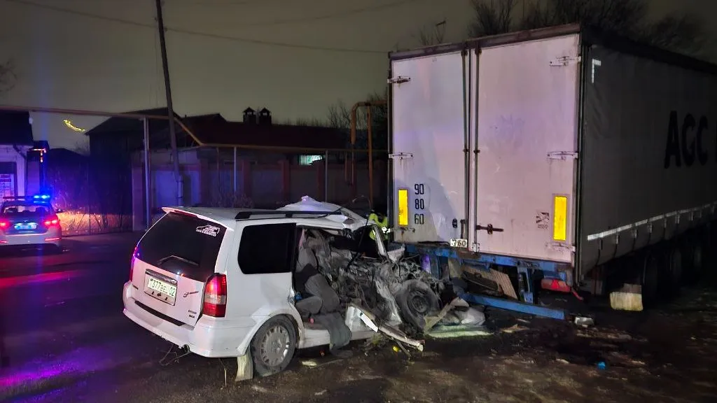 Праворульная машина с газовым оборудованием залетела под фуру в Алматы