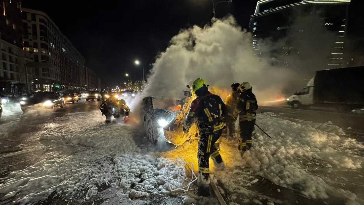 Открытым пламенем вспыхнул автомобиль на оживленном проспекте в Астане