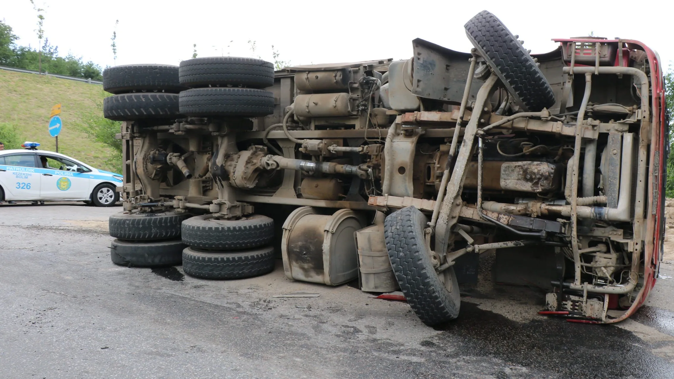 Большегруз с тоннами подсолнечного масла перевернулся на трассе Усть-Каменогорск – Семей