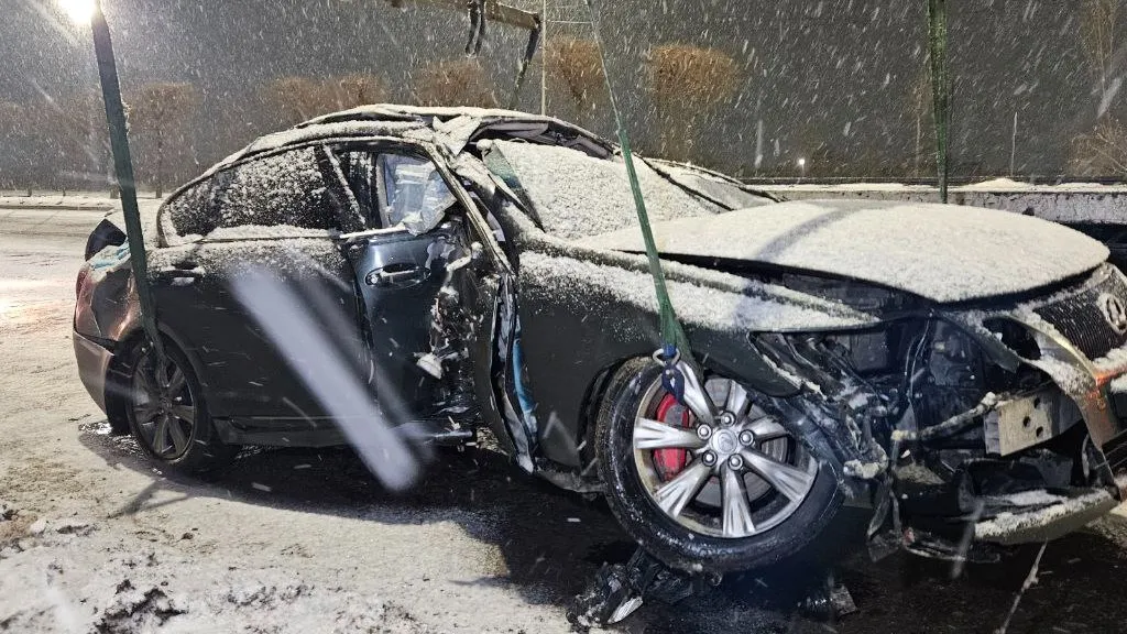 На заснеженной дороге в Алматы машина вылетела на встречную полосу: пассажир получил травму