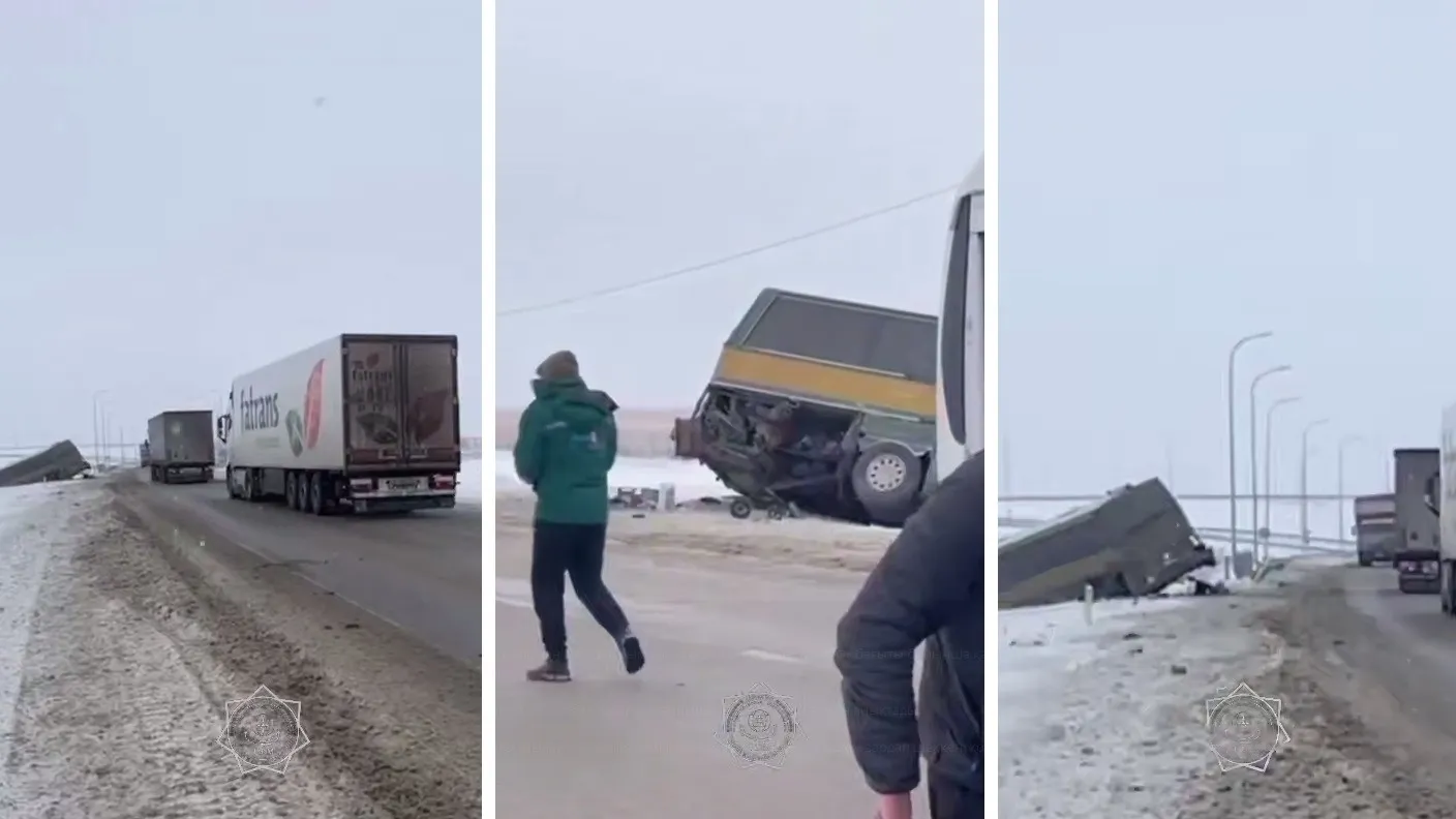 Автобус с иностранцами столкнулся с грузовиком на трассе в Кызылординской области