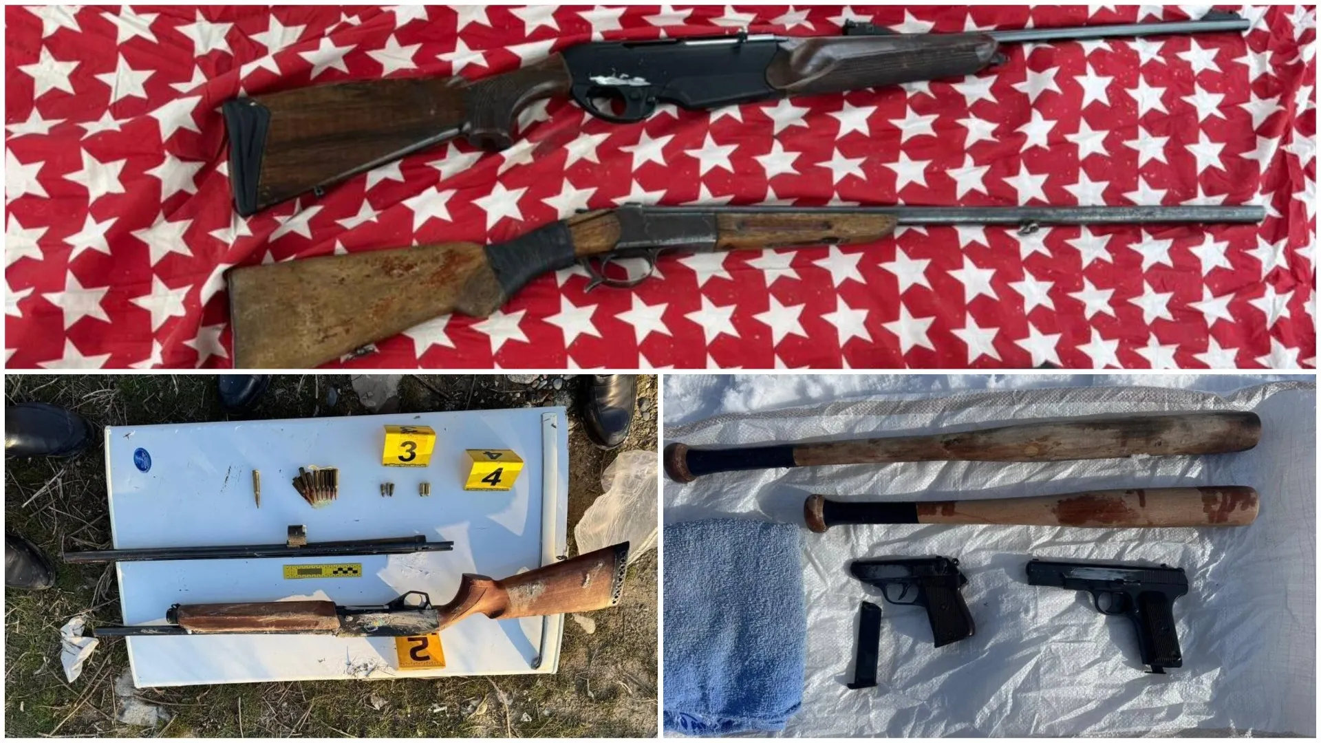 11 марта на окраине села Сарыкемер Байзакского района Жамбылской области сотрудниками криминальной полиции на берегу реки Талас обнаружены и изъяты охотничьи ружья, похищенные во время январских событий в Таразе.