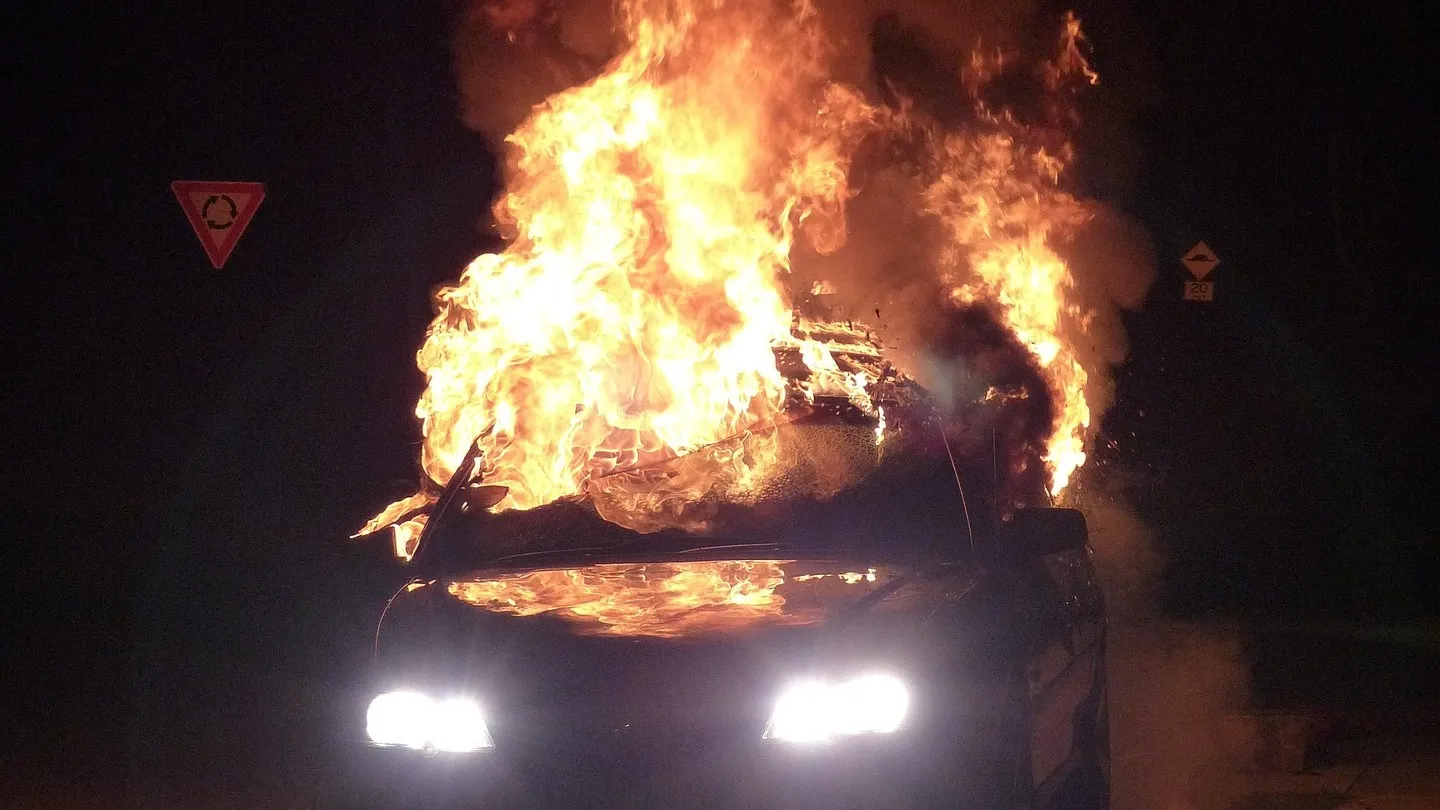 В сети появились кадры, на которых Toyota маневрирует среди других машин, а потом на полном ходу врезается в припаркованный на обочине грузовик. На других кадрах видно, что после столкновения начался пожар.