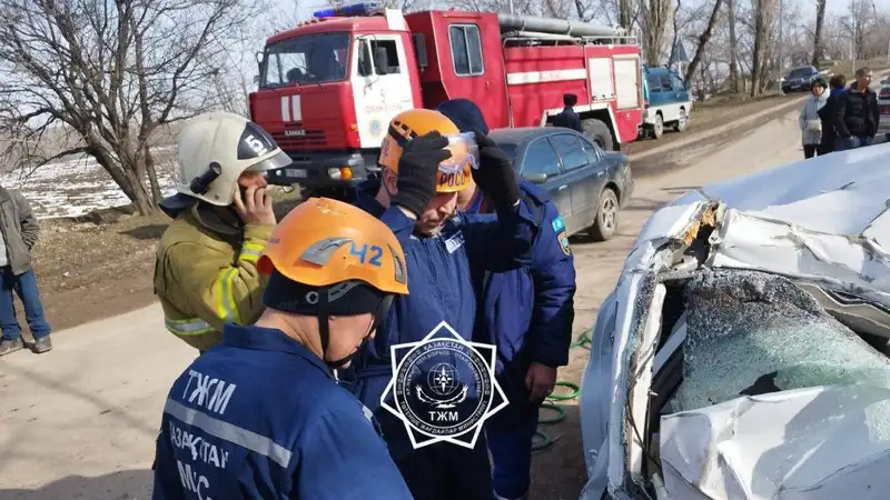 Тело мужчины извлекли из искореженного автомобиля после ДТП в Алматинской области