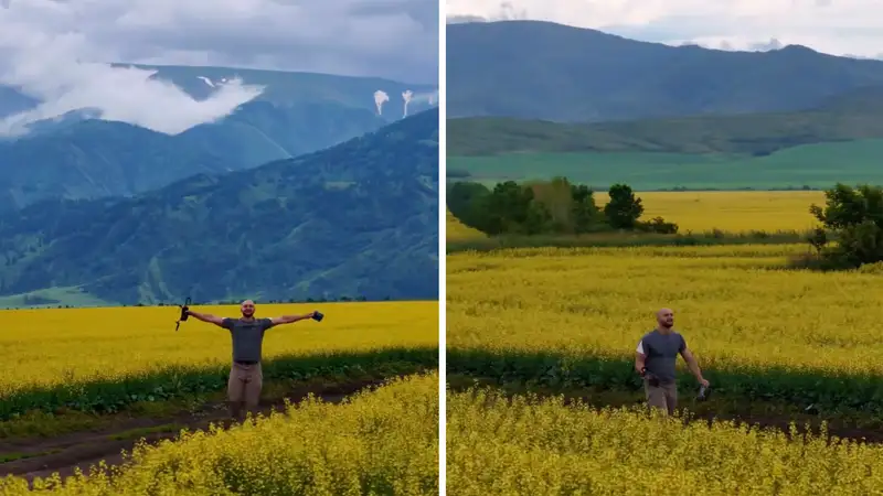 Казахстанский видеограф показал цветение рапсовых полей в Катон-Карагае