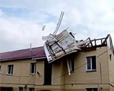 ветер, причинивший ущерб зданиям в нескольких поселках, передает Zakon.kz