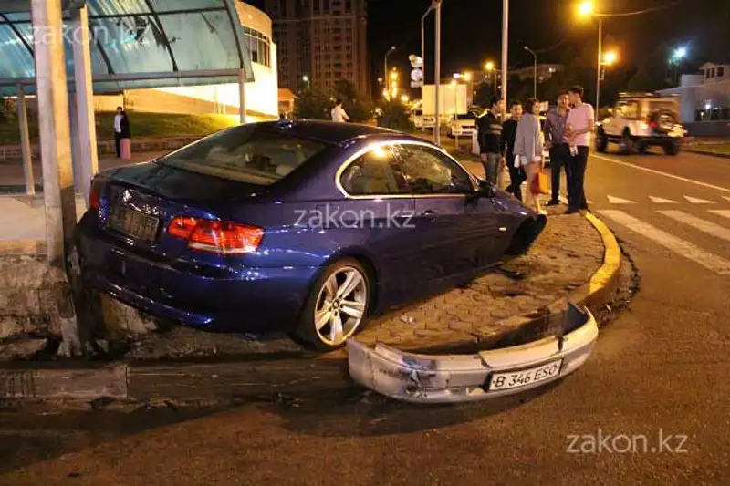 В это время водитель серебристого БМВ 1 серии ехал на восток по Аль-Фараби, «вылетел» на обочину и протаранил Мазду, которую отбросило в левый ряд на проспект. После БМВ врезался в «тройку», которая от удара отлетела в фонарный столб. Осколки и запчасти от разбитых машин разлетелись по всей дороге и в подземный переход.