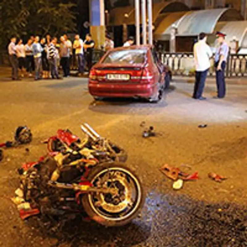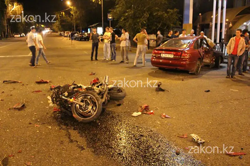 Жуткое ДТП с участием мотоцикла и Мазды произошло в Алматы (фото)