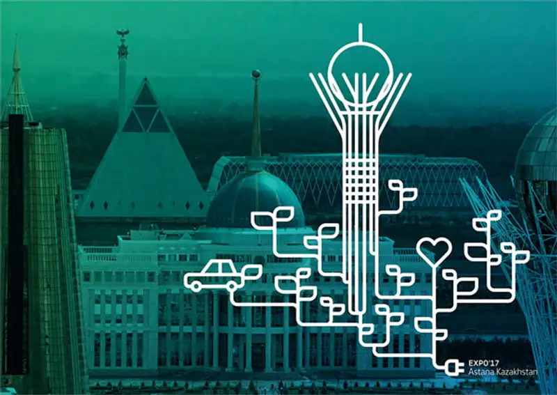 Казахстан находится на пересечении Европы и Азии. Такое положение формирует новое мировоззрение, которое соединяет в себе все лучшее от восточных и западных традиций. Представленный логотип позиционирует Астану как центр рождения «Третьей индустриальной революции».