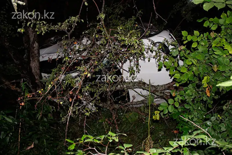 Девушка за рулем БМВ ехала с Медео в сторону города. Чуть выше экопоста и селезащитных сооружений, на одном из левых поворотов она не справилась с управлением и БМВ выкинуло на полосу встречного движения, где машина, проскочив между мачтой освещения и деревом, улетела в небольшой обрыв. За ней остался «след» - сломанные деревца, ветки и обломки самого авто, которое «приземлилось» на правый бок. Саму машину с дороги практически не было видно, так как ее засыпало ветками.