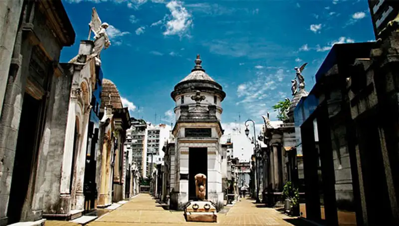 На этом кладбище покоится Ева Перон - первая леди Аргентины, ее могила привлекает бесчисленных посетителей, однако и само кладбище имеет монументальный вид. Здесь гигантские мраморные статуи и красиво вырезанные мавзолеи охраняют останки самых известных людей Аргентины. Вы можете посетить кладбище во время пешеходной экскурсии.