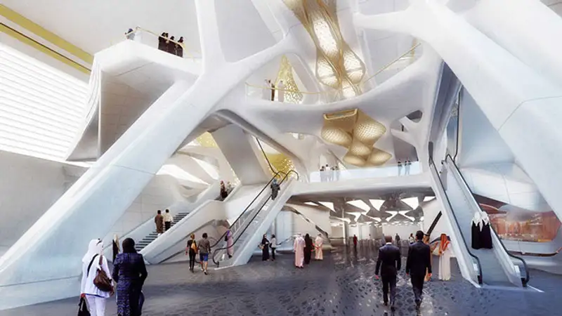 Проект станции метро Король Абдула в Саудовской Аравии, сделанный студией Захи Хадид