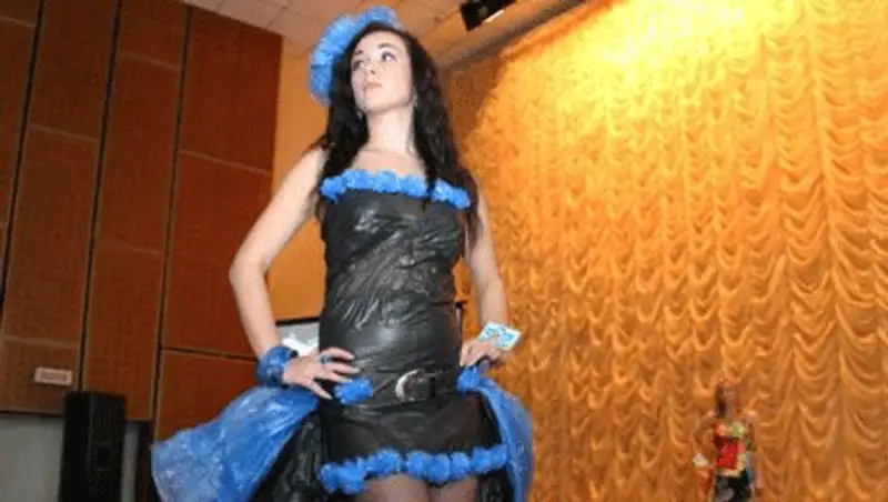 А как думаете, что можно сделать со старыми резиновыми перчатками? Выкинуть? Банально! Из них легко смастерить оригинальное платье, уверена Лаура Мустафина. Правда, потребуется 200 пар перчаток. И пара дней кропотливого труда. В итоге получился наряд, в котором Лаура, ученица 10 класса, готова пойти даже на дискотеку. Говорит, все удивленные взгляды будут ее.