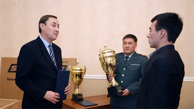 Сегодня, 29-го октября взвод нашего вуза был награжден Кубком первого заместителя министра обороны - начальника Вооруженных сил РК. Награду вручил заместитель министра обороны Б.Ж. Абдіраим.