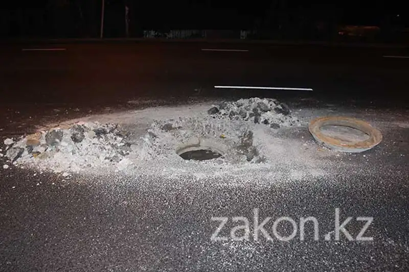 Водитель Мерседеса попал в ДТП при попытке объехать раскопанный люк, Алматы (фото)