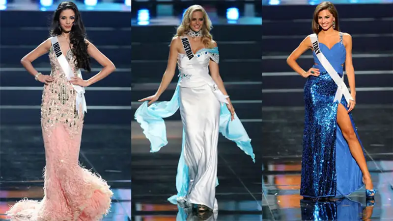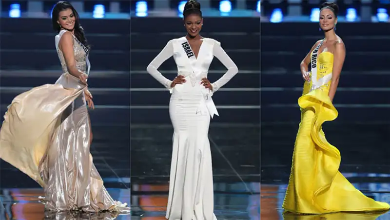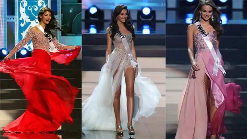 Россию в конкурсе представляет 19-летняя Эльмира Абдразакова. Она появилась на сцене в роскошном платье ярко-алого цвета с длинным шлейфом от американской марки Sherri Hill. На его примерку девушка специально летала в Нью-Йорк.