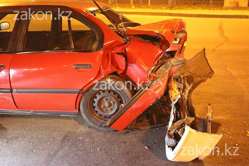 В Алматы водитель Мицубиси на полном ходу въехал в стоящий Ниссан (фото)