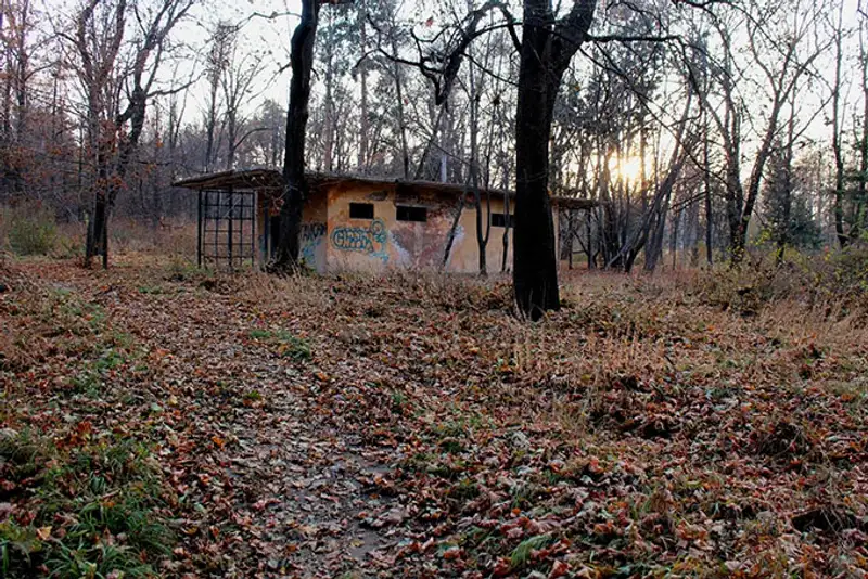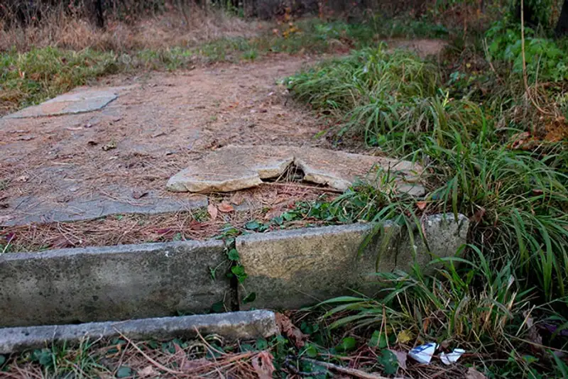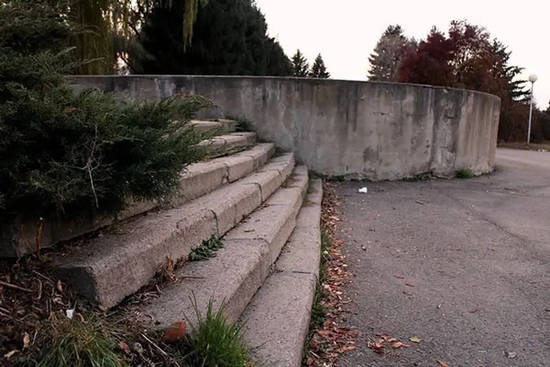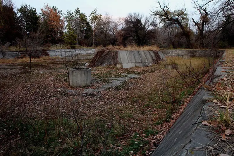 Разбитые дорожки ведут к разрушенному туалету, где справляют нужду посетители сада, можно только догадываться.