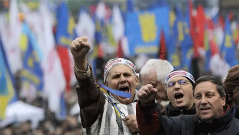 Сообщается, что на центральной площади Киева - площади Независимости - на данным момент находятся около 20 тыс. демонстрантов.