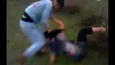 районе» видно, как одна из девушек повалила на землю другую, и наносит ей не
