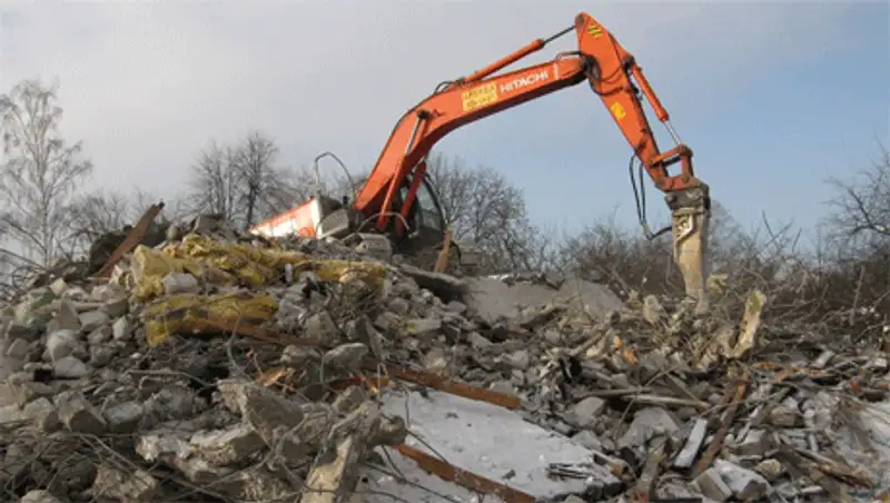 - Методом демонтажа - дома блочного типа, а методом валки - дома панельного типа. Ведутся работы. Уже снесены, убраны под нулевой цикл 9 домов.