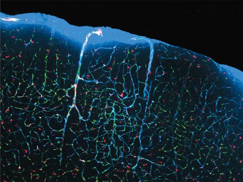 11. Исследователи нарушений сна обнаружили каналы (голубого цвета на фото), созданные нейронами для избавления от ненужных эмоций во время сна человека. На снимке запечатлена красивая цветовая гамма.