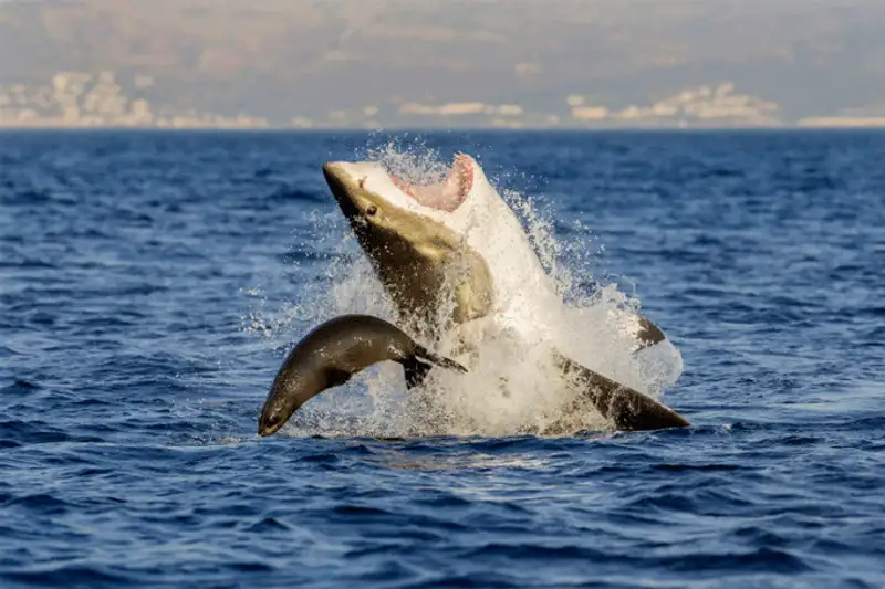 Морской котик, спасшийся от акулы у берегов Кейптауна в Южной Африке. Фото: David Jenkins, Caters News