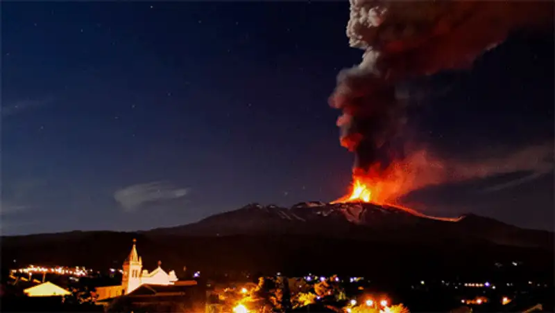 Извержение вулкана Этна — самого высокого действующего вулкана Европы, 23 ноября 2013
