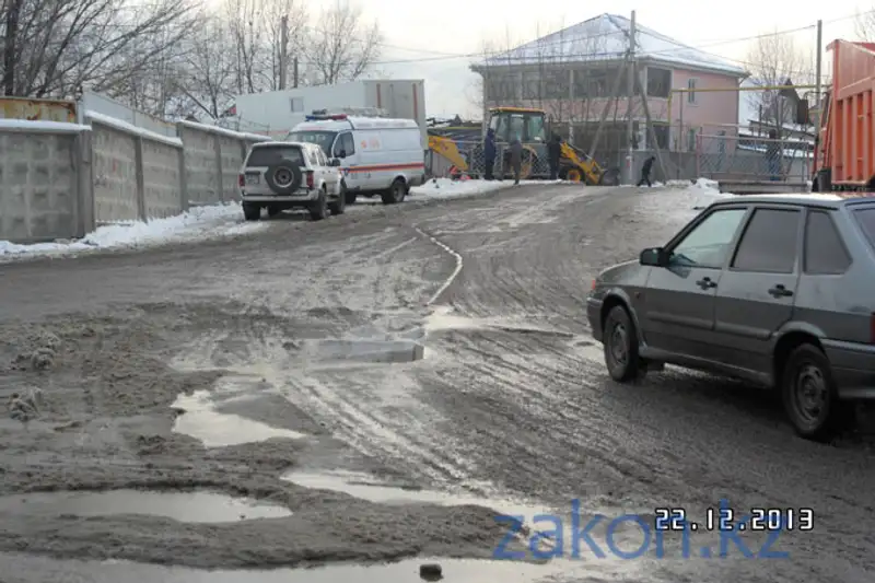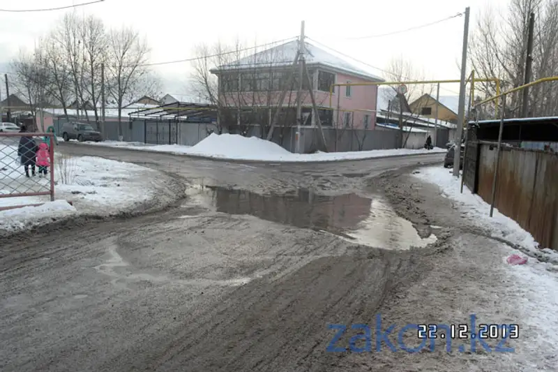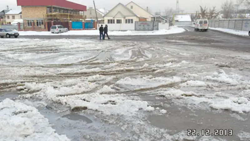 Угроза подтопления произошла в районе пр. Райымбека. Из-за снегопада и похолодания в русле реки образовался затор изо льда, и вода пошла поверху, выйдя из берегов. Вода успела залить дорогу и некоторые дворы частных домов.