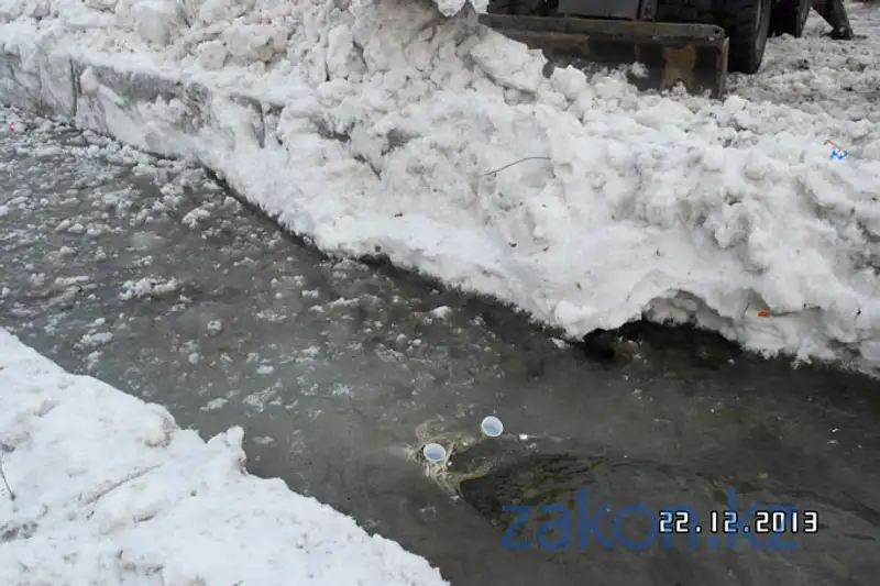 В одном из районов Алматы из-за снегопада и похолодания р. Каргалинка вышла из берегов