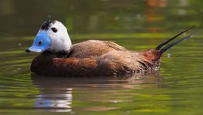 Савка – редкий реликтовый вид уток, отличающийся необычной внешностью – «горбатым» синим носом, белой головой и стоящим при плавании вверх жестким хвостом. Савка занесена в Красный список МСОП, как угрожаемый вид, и в Красную книгу Казахстана с категорией 1 – «вид под угрозой исчезновения».