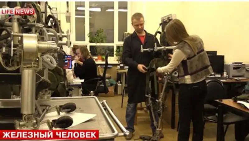 - Вес, укрепленный на силовой конструкции вот этой верхней, через шарнир в тазу и бедре проходит через ногу и уходит в землю, - объясняет принцип действия изобретения научный сотрудник института механики МГУ Павел Комаров. - То есть в статической позе человек полностью разгружается от веса.