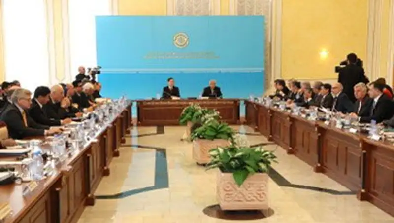 Глава внешнеполитического ведомства Казахстана Ерлан Идрисов и председатель Агентства РК по делам религий Марат Азильханов рассказали о религиозной ситуации в республике и о ее соответствии международным обязательствам, принятыми нашей страной в области прав человека и демократии.