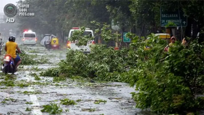 Стоит отметить, что с самого утра «Раммасун» разгулялся не на шутку. Скорость ветра в некоторых районах достигла 205 километров в час, повсеместно повалены деревья, оборваны линии электропередач. На острове Лусон наблюдается наводнение, сообщает supercoolpics.com.