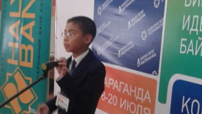 Самый юный участник конкурса бизнес-идей среди молодежи «Atameken StartUp» в Караганде - 11-летний Алдияр Божбанов - получил специальный приз в размере 100 тыс. тенге.