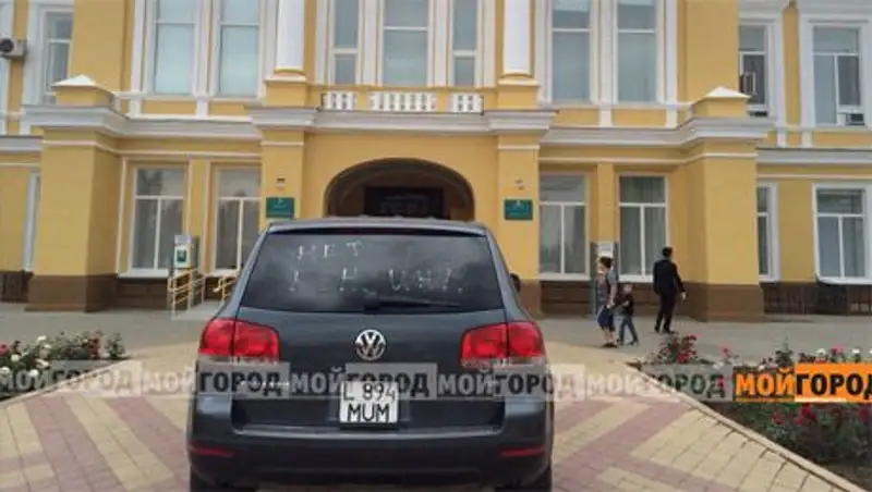 Водитель оставил свою машину перед зданием акимата.