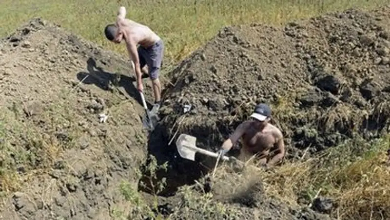 Жители Мариуполя на рытье траншей
