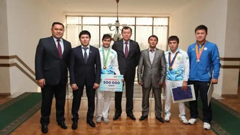 Аким области поздравил спортсменов за их достижения, пожелал им дальнейших побед. Кроме того, дзюдоисты получили от рук главы региона сертификаты на денежные вознаграждения. В частности, чемпиону азиатских игр вручили сертификат на 1 млн. тенге, а серебренному и бронзовому призерам по 500 тыс. тенге.