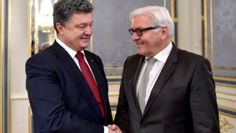 Штайнмайер отметил, что все это было предметом его разговора и с президентом Порошенко. Позже на президентском сайте появилось сообщение о намерении привлечь к совместному решению конфликта на Донбассе не только Россию, США и ЕС, но и Польшу.