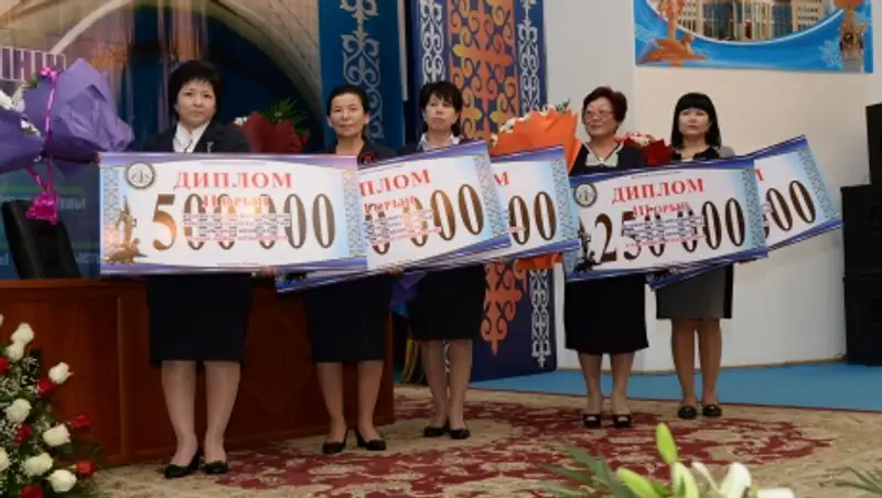 Учитель школы-интерната № 4 для одаренных детей Шаймаганбет Жиенбаев получил легковой автомобиль, учитель сш № 215 Абсаттар Абдигаппаров – 1 млн тенге, учитель сш № 11 Айман Рсаева – 500 тыс тенге, учителя ШОД «Мурагер» Ляззат Алиева и Людмила Егай, учителя сш № 212 Гульнар Тунгышбаева и сш № 131 Сырдарьинского района Жумагуль Нурымова – по 250 тыс тенге.