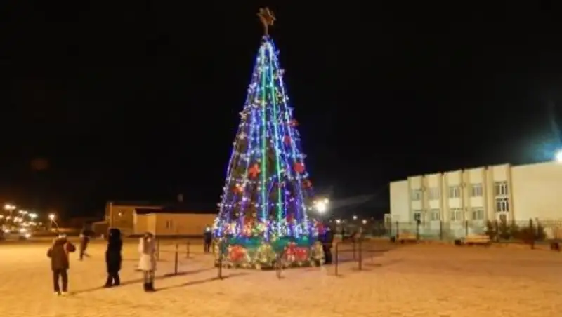 В поселке Мангистау построили площадь и установили 11-метровую елку