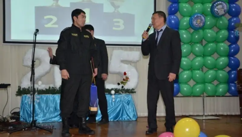 На новогоднем празднике лучшему полицейскому вручили диплом и памятный подарок. 31-летний Е. Садыкбеков седьмой год служит в органах внутренних дел, последние два года - в СОБР, занимается рукопашным боем. В ноябре он задержал одного из подозреваемых в разбойном нападении на букмекерскую контору.