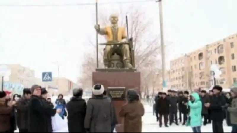 В этом году Казахстан отмечает 550-летие казахской государственности. Именно к этой знаменательной дате здесь решили установить памятник в честь уникальной археологической находки. На изготовление фигуры высотой в пять метров из металла и бетона у скульптора ушло три месяца. Зато теперь это место станет знаковым для всего района.