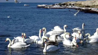 Экологи Актау запрещают кормить лебедей хлебом