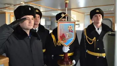 На побережье Каспийского моря военнослужащие ВМС РК приняли Вымпел Победы