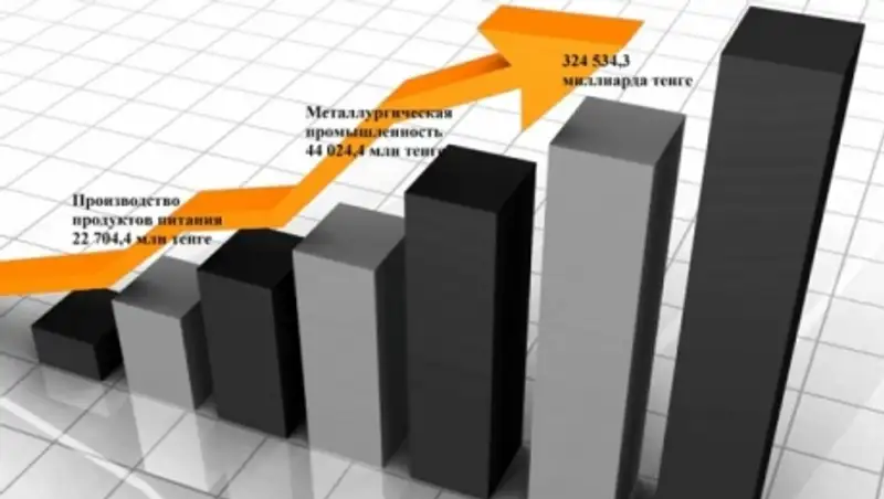 В январе-декабре 2014 года предприятиями города выпущено продукции и оказано услуг промышленного характера на сумму 324 534,3 миллиарда тенге.