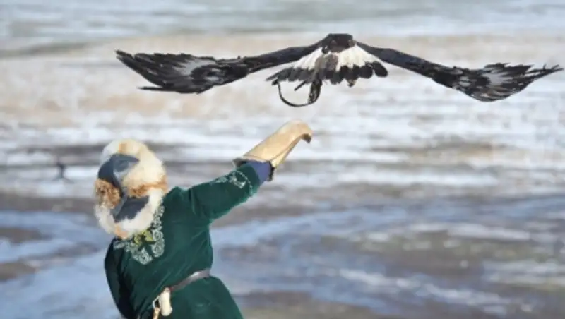 В ходе финальных туров ловчие птицы охотились на голубей, зайцев и лис. Беркутчи, облаченные в одежду с национальным орнаментом, выпускали своих гордых питомцев на охоту.