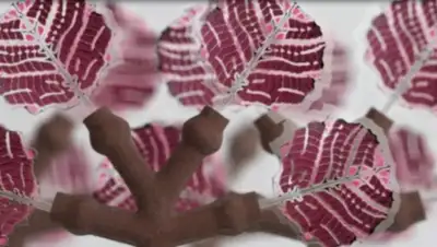 Сами листья были созданы по уникальной технологии, изобретенной VTT, а ствол и ветки, на которых они держатся, делались на древесной основе.