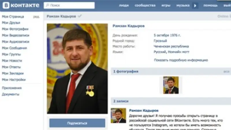 До сих пор Кадыров был известен как активный пользователь западных сервисов Instagram и Twitter с 854 тысячами и 161 тысячами читателей соответственно.