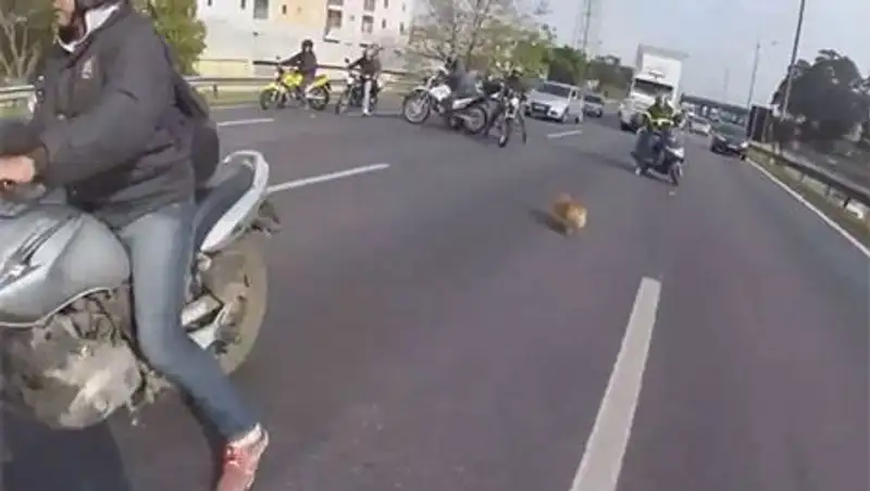 В Бразилии байкеры перекрыли движение на оживленной трассе ради спасения собаки